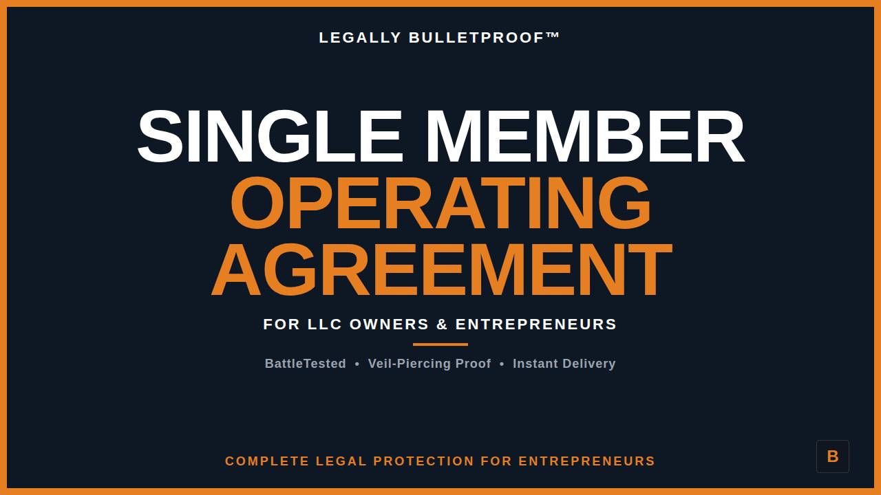 The Ultimate Single-Member Operating Agreement + Academy ✔ Custom agreement built from your answers ✔ Full video tutorial — every provision explained ✔ 2 months Business Defense Academy access ($394 value) One-time payment. Instant access. No refunds on legal templates and proprietary training.