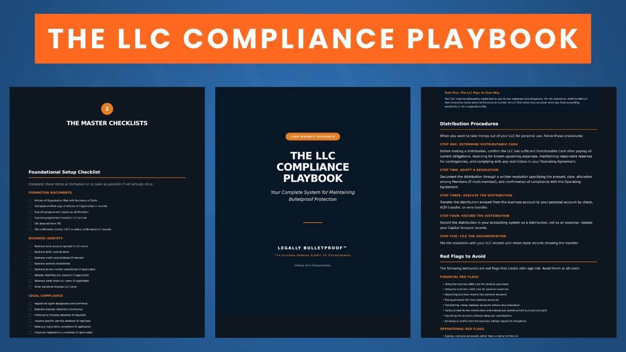 GET THE ULTIMATE LLC COMPLIANCE PLAYBOOK FOR 50% OFFThe Complete System for Maintaining Bulletproof LLC Protection